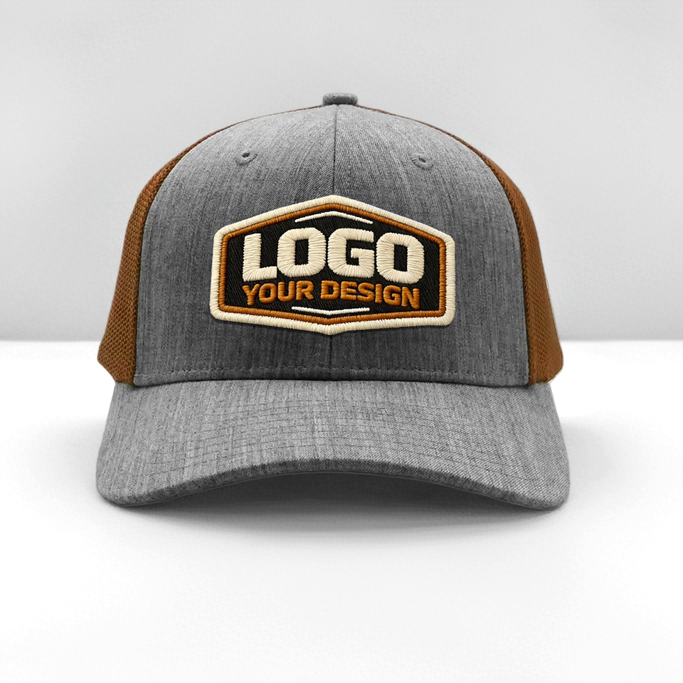 Casquettes Trucker Ajustables à 6 Panneaux en Coton 100% Style 112 pour Hommes avec Broderie Personnalisée et Patch Tissé, Faible MOQ, Chapeaux en Maille Grise
