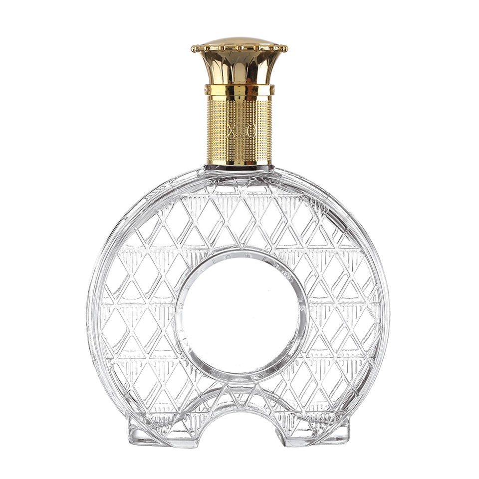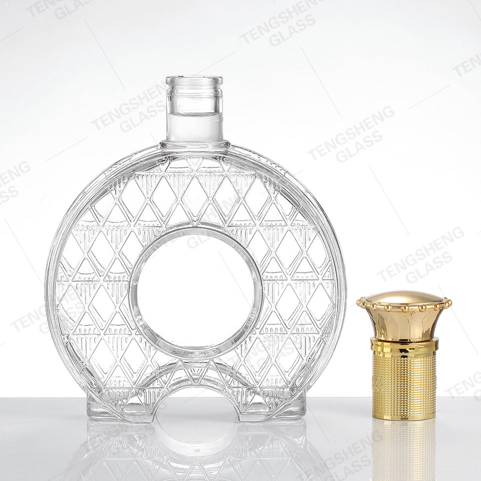 Pot en verre plat personnalisé pour whisky, brandy, vodka, XO, vin rouge, tequila, jus, boisson, impression à chaud dorée, joint en caoutchouc