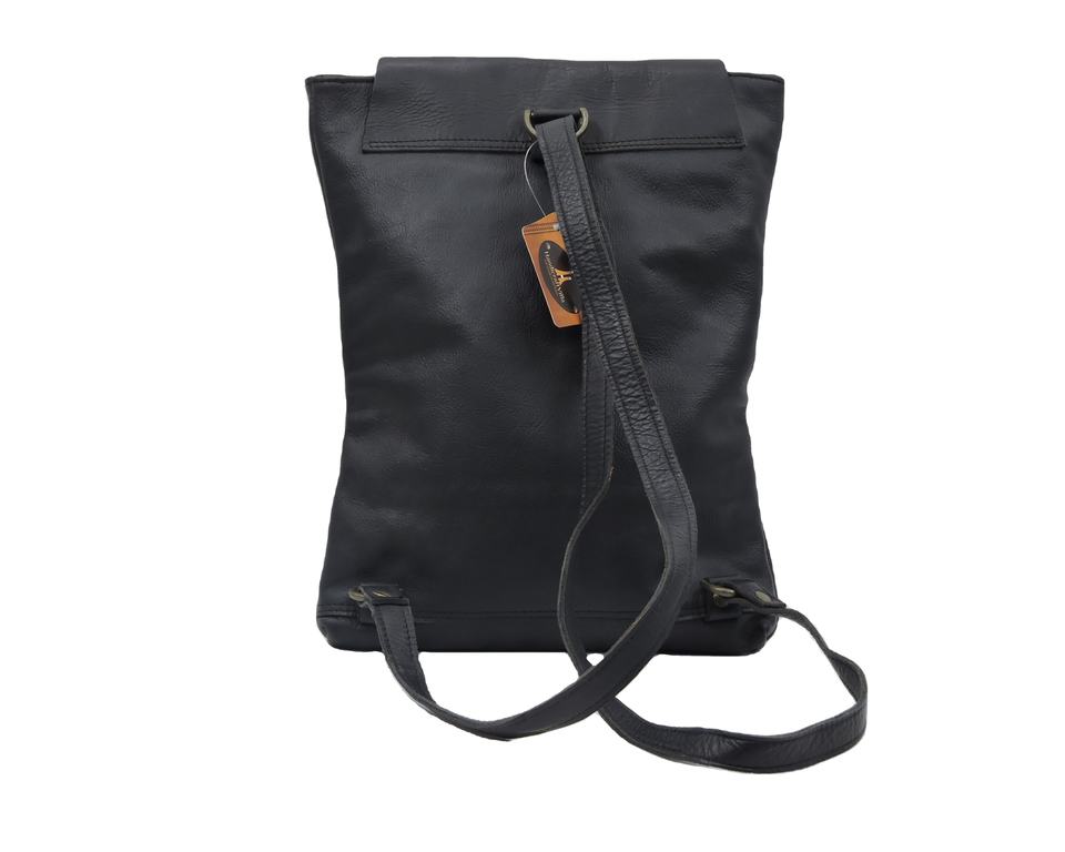 Customised Genuine Leather Small Black Leather Flap Closer Rucksack Backpack Bag with Two Shoulder Straps for Daily Use