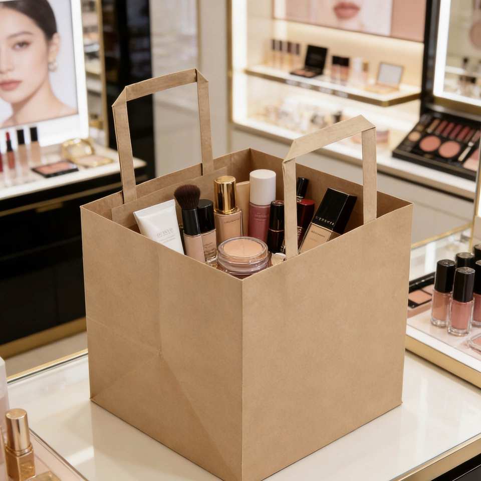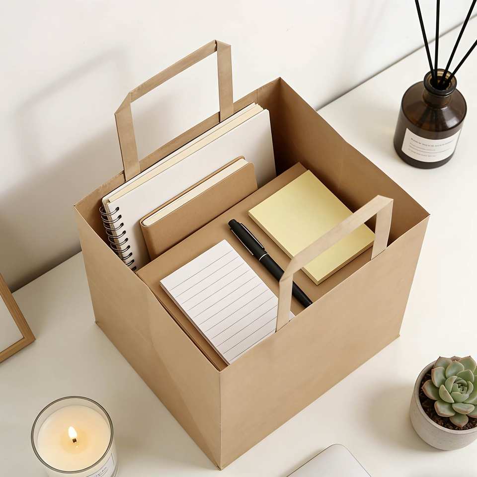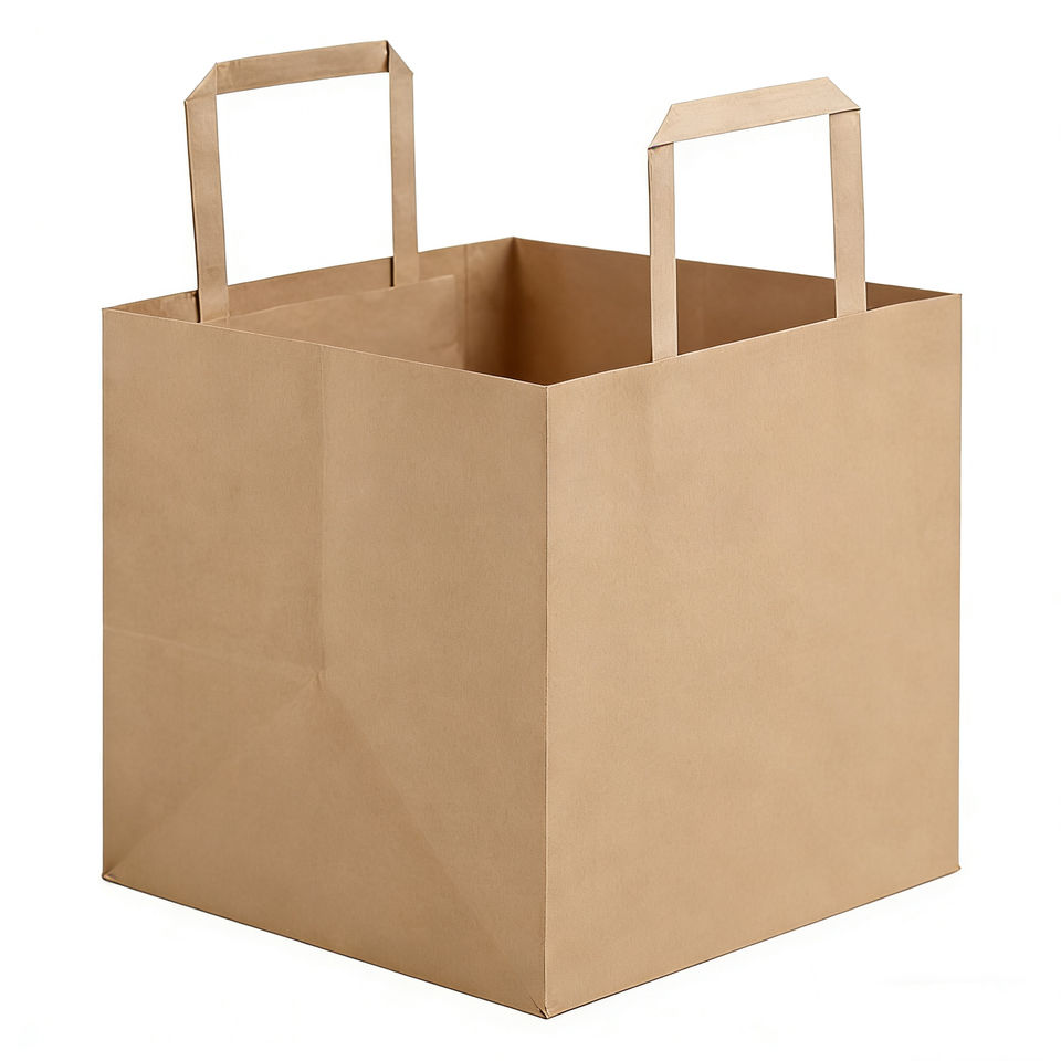 Sacs en papier kraft personnalisés, épais, à fond carré et poignées plates, pour l'emballage alimentaire, les courses et les cadeaux
