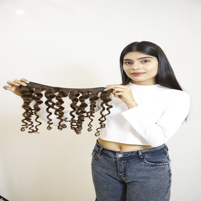 Extensions de cheveux Remy non traités indiens vierges naturelles doublement tissées donneur unique personnalisées Extensions de cheveux humains