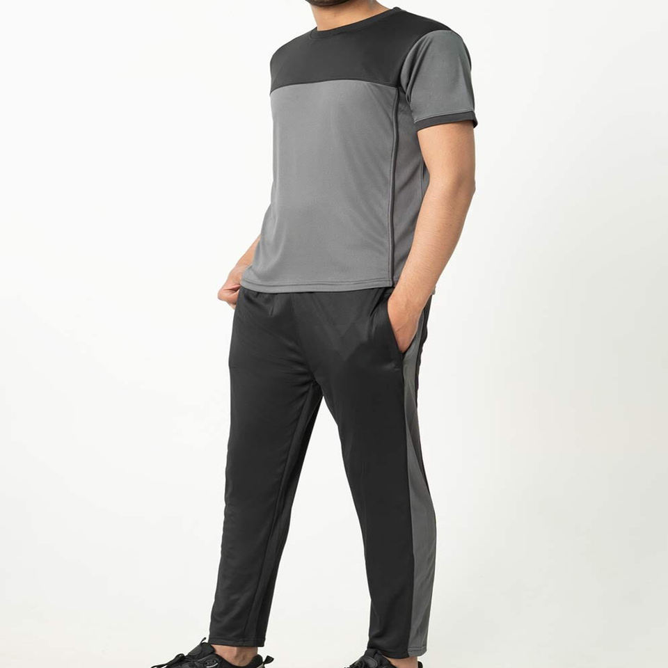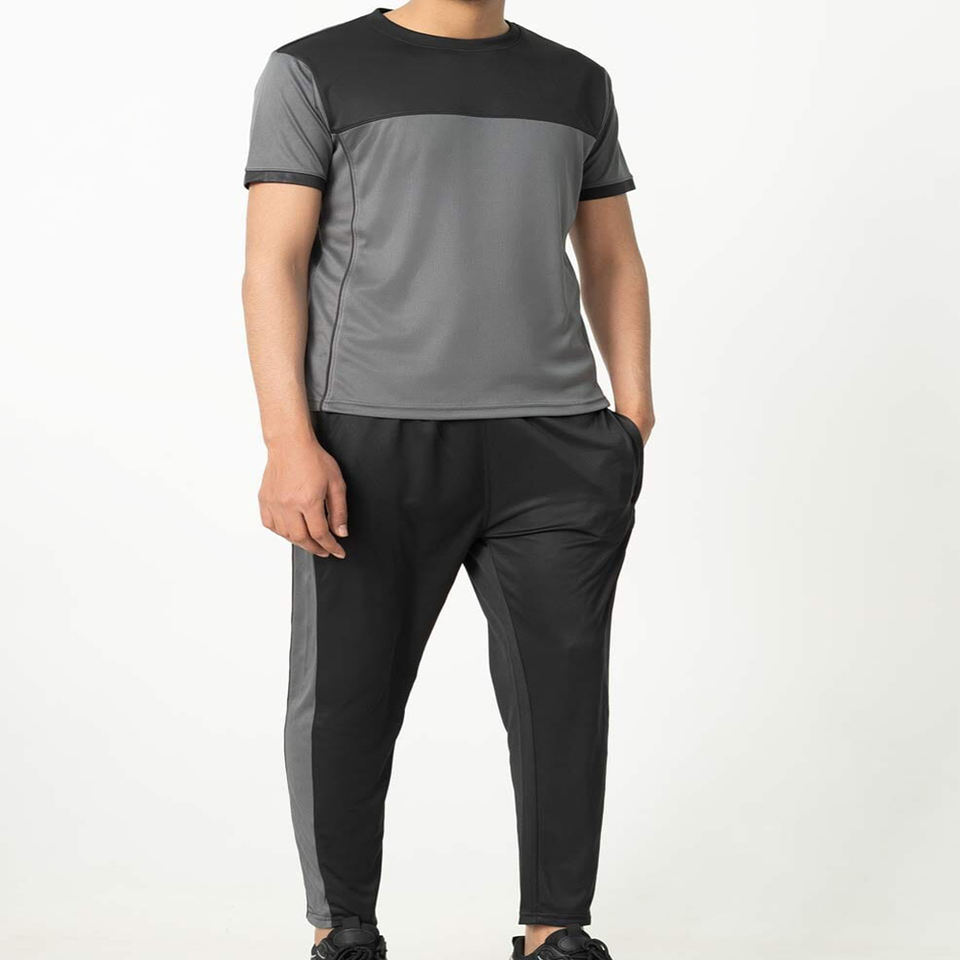 Ensemble deux pièces pour hommes avec logo personnalisé pour les entraînements d'été Ensemble de vêtements de sport T-shirt à manches courtes + pantalon long Tendance et confortable
