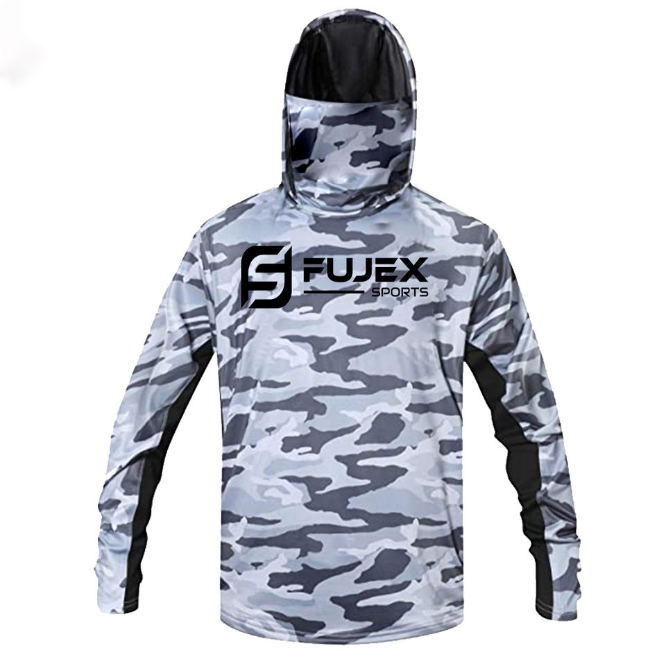 Personnalisé Hommes UPF 50 + Sweat à capuche à manches longues 100% Polyester Respirant Protection solaire Chemise de pêche Options de taille Plus Douceur