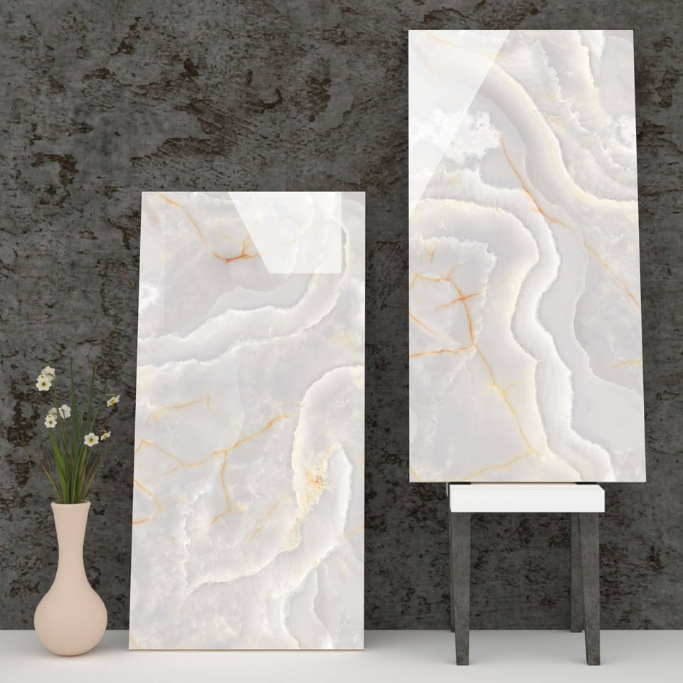 Carreaux de sol pour salle à manger extérieure de conception moderne personnalisée 600X1200mm, couleurs vives, fabriqués en Inde.