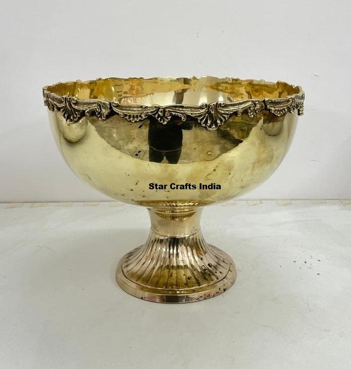 Bol à fruits décoratif moderne personnalisé en laiton argenté, motif végétal accrocheur pour Noël et Ramadan