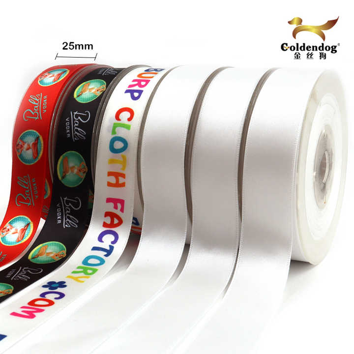 Rubans personnalisés 100% polyester personnalisés par sublimation, double face, en satin blanc, 25mm, 1 pièce