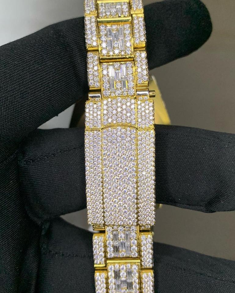 Montre personnalisée en diamant de marque haut de gamme, montre ronde et baguette entièrement glacée pour hommes, montre automatique de luxe pour hommes