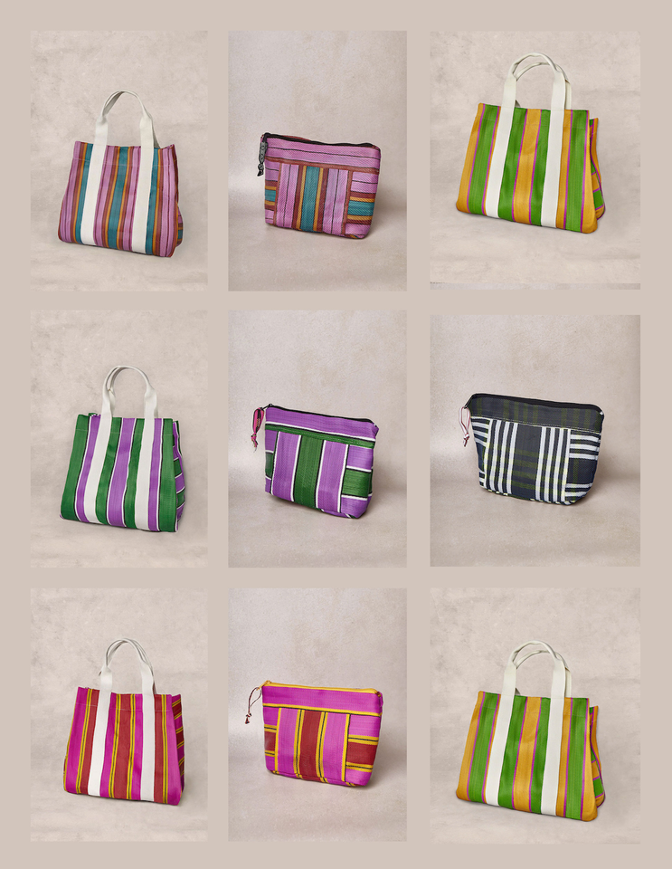 Mini sac à main en nylon recyclé personnalisé pour femmes Mini sac tendance à fermeture ouverte et à motif rayé avec logo personnalisé