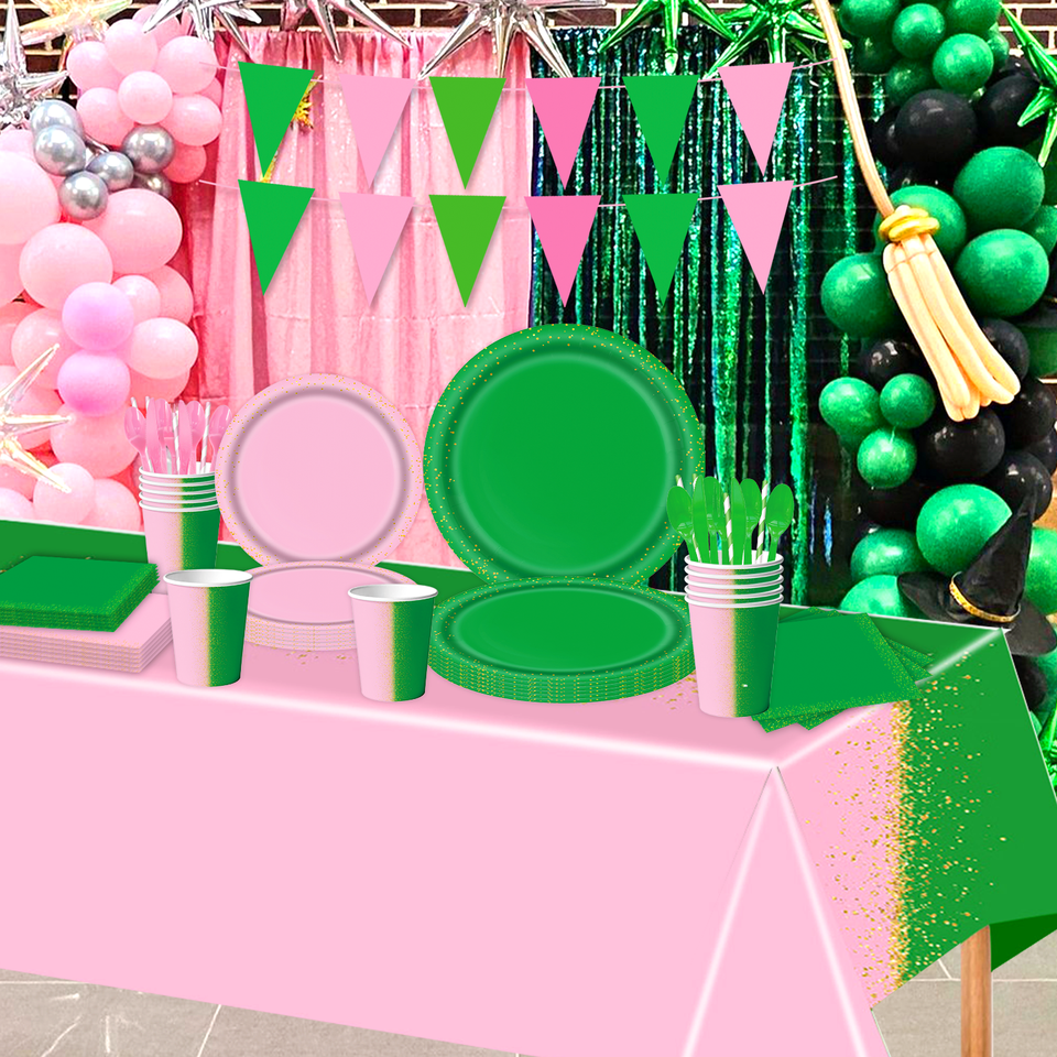 Service personnalisé rose vert ensemble anniversaire célébration bannière ballons décorations de gâteau fournitures de fête d'anniversaire pour enfants
