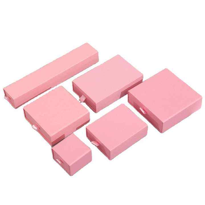 Petit tiroir coulissant en carton rose personnalisé pour emballage de boîtes à bijoux bague collier