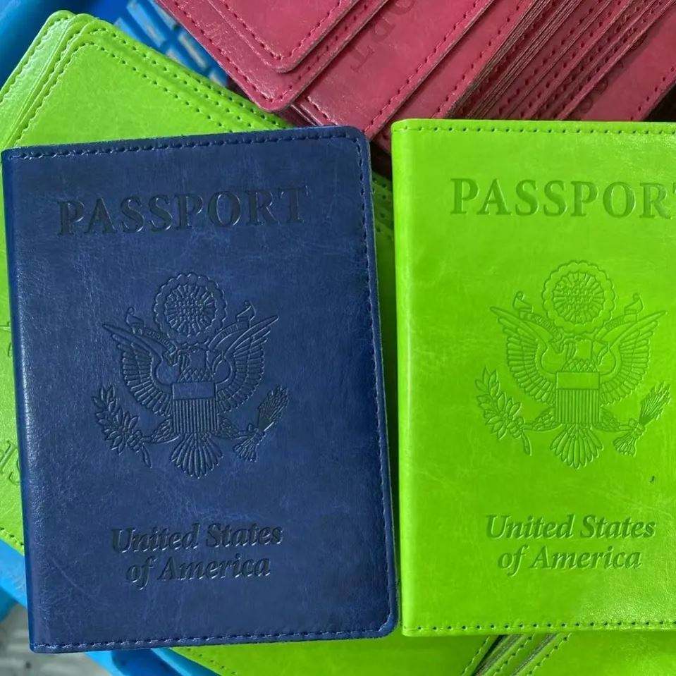 Accessoires de voyage personnalisés, couverture de passeport, blocage RFID, cuir synthétique, porte-passeport fin à sublimation vierge