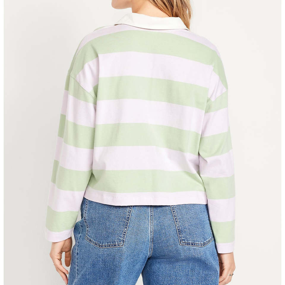 Maillot de Rugby à Motif Solide Vintage Personnalisé de Haute Qualité 100% Coton Polo à Rayures Larges Chandails Brodés pour les Couples