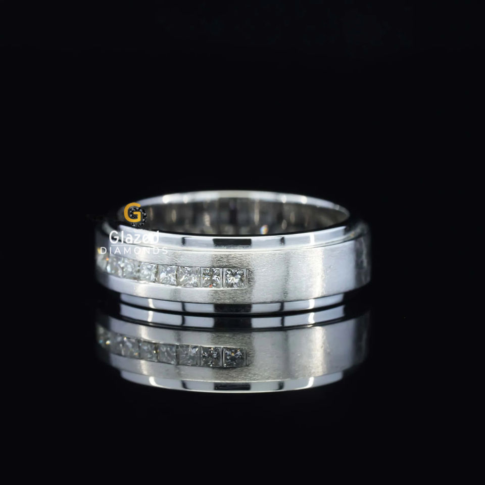 Customizable 10Kt White Gold Hip Hop Iced Band Half Eternity Channel Setting VVS Princess Cut Lab Grown Diamonds Pearl Jewelry