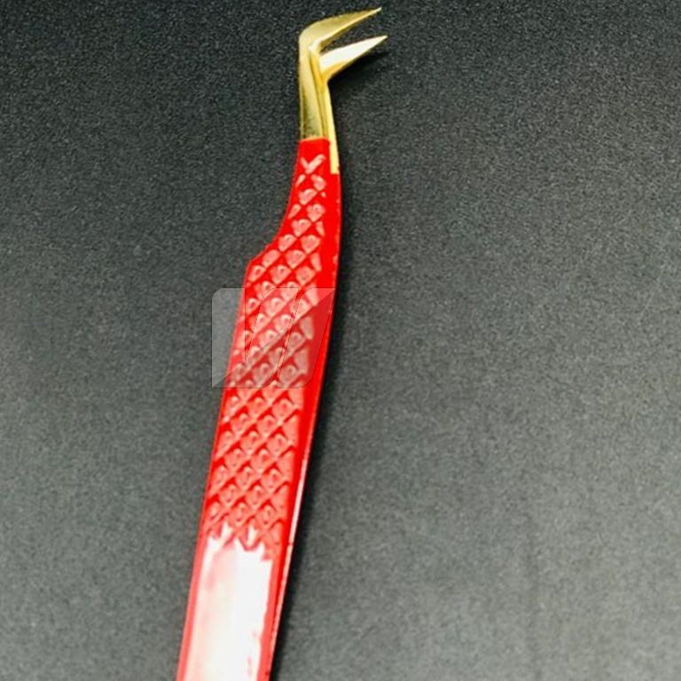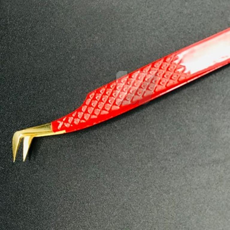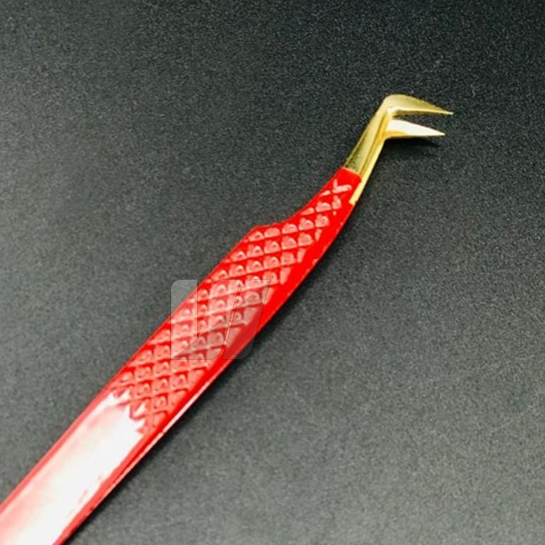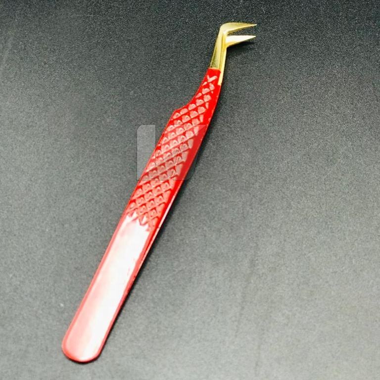 Pince à épiler personnalisable en acier inoxydable japonais de 10 mm, anti-magnétique, pour extensions de cils, avec poignée diamant rouge et pointe dorée