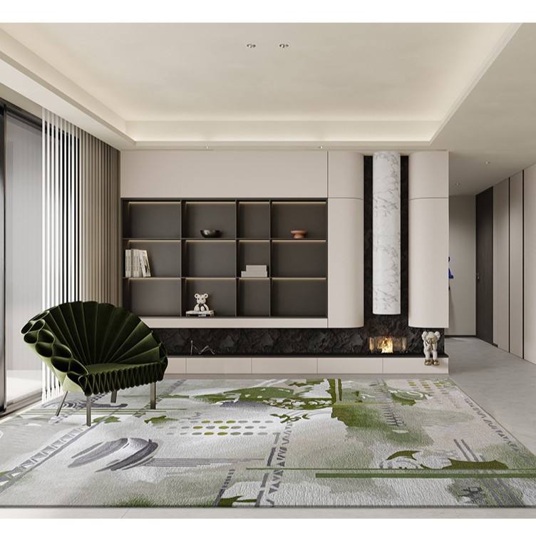Tapis en laine de 10mm d'épaisseur personnalisable en peluche couleur de rime de style national vert riche pour le canapé-lit vert de la villa à usage domestique