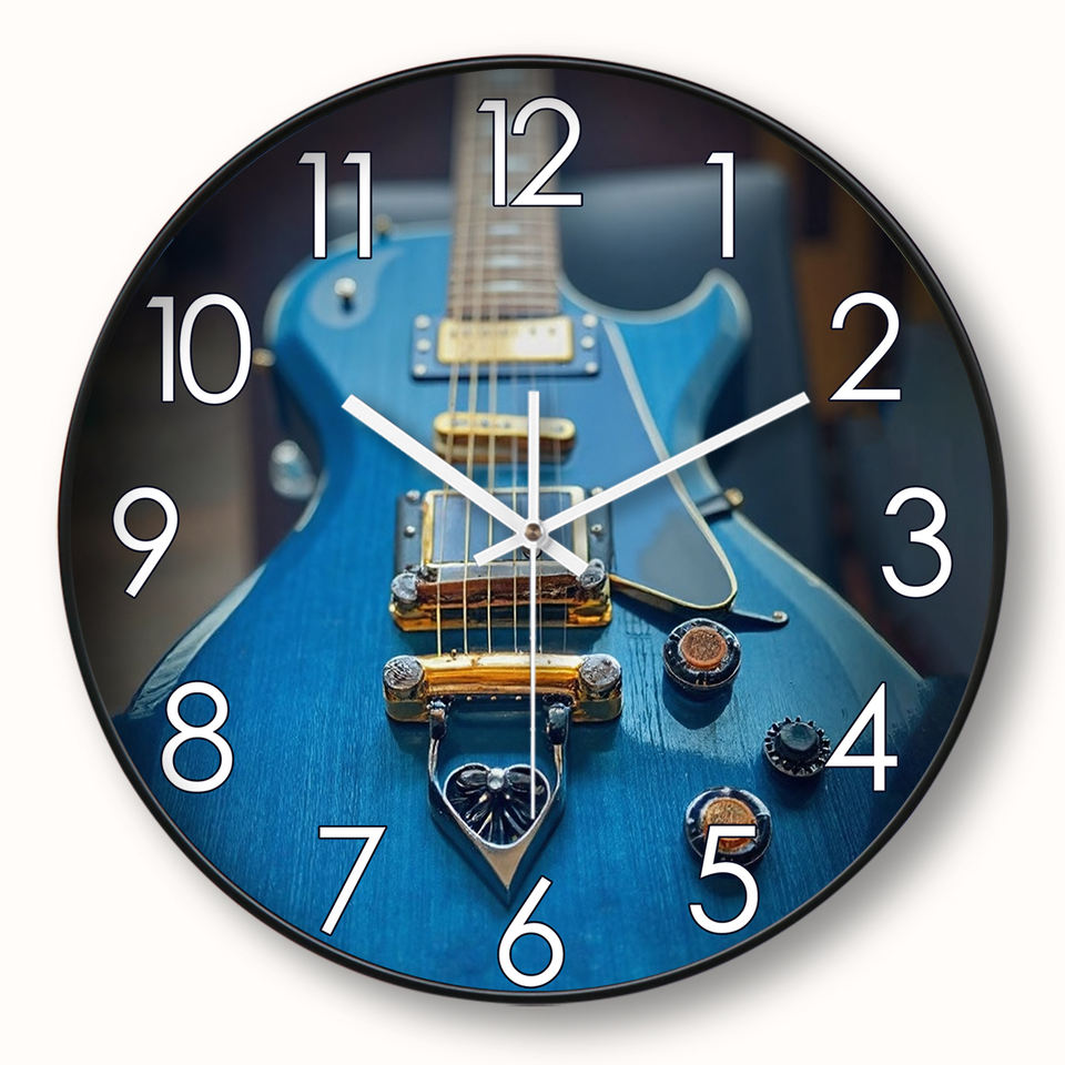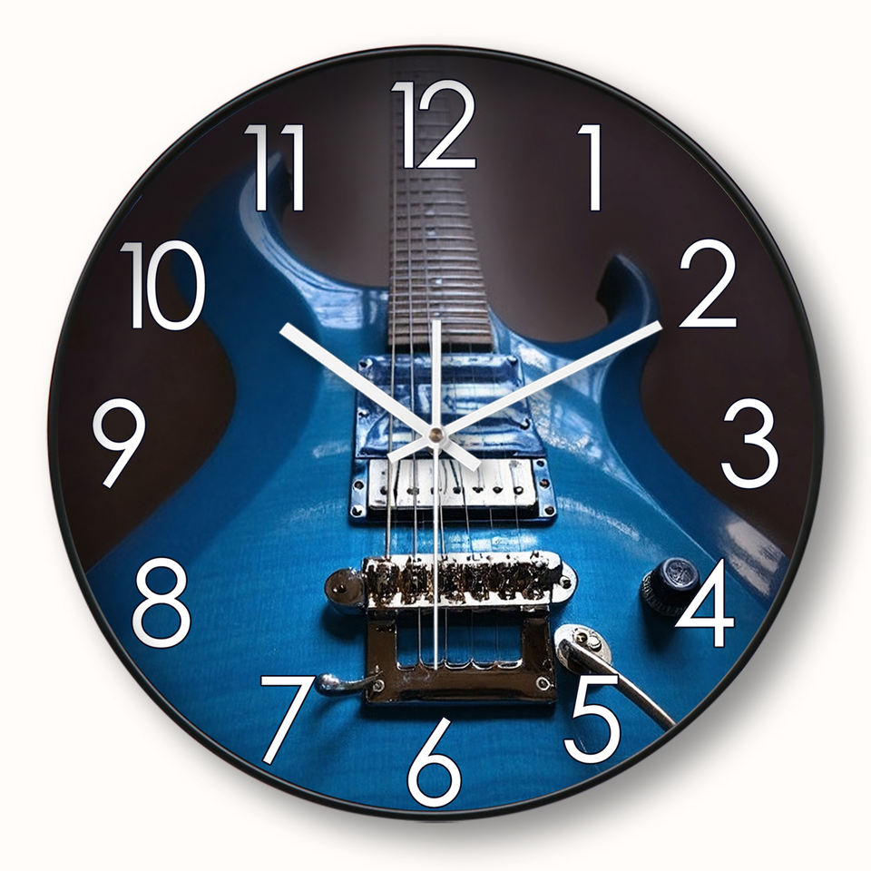 Horloge murale silencieuse personnalisable de 12 pouces pour guitare et basse, affichage d'aiguilles de style antique moderne pour salles de musique pour la rentrée scolaire