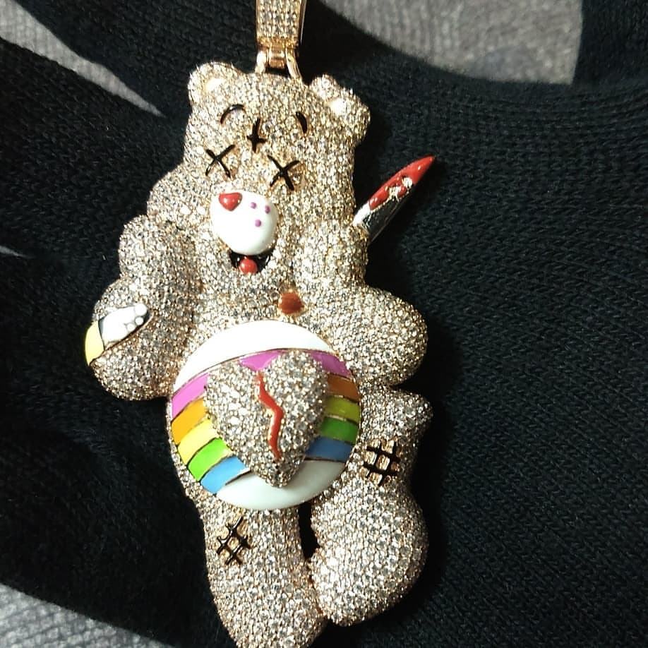Pendentif personnalisable en plaqué or jaune 14 carats taille princesse 2CT en moissanite véritable charme de dessin animé hip-hop de luxe Base en argent sterling