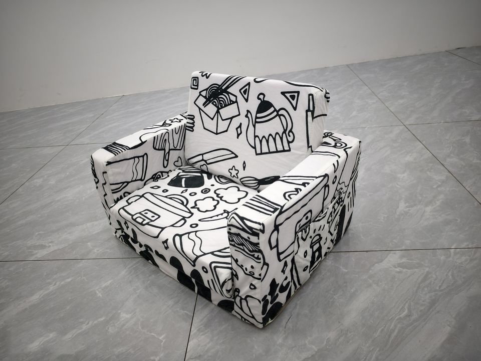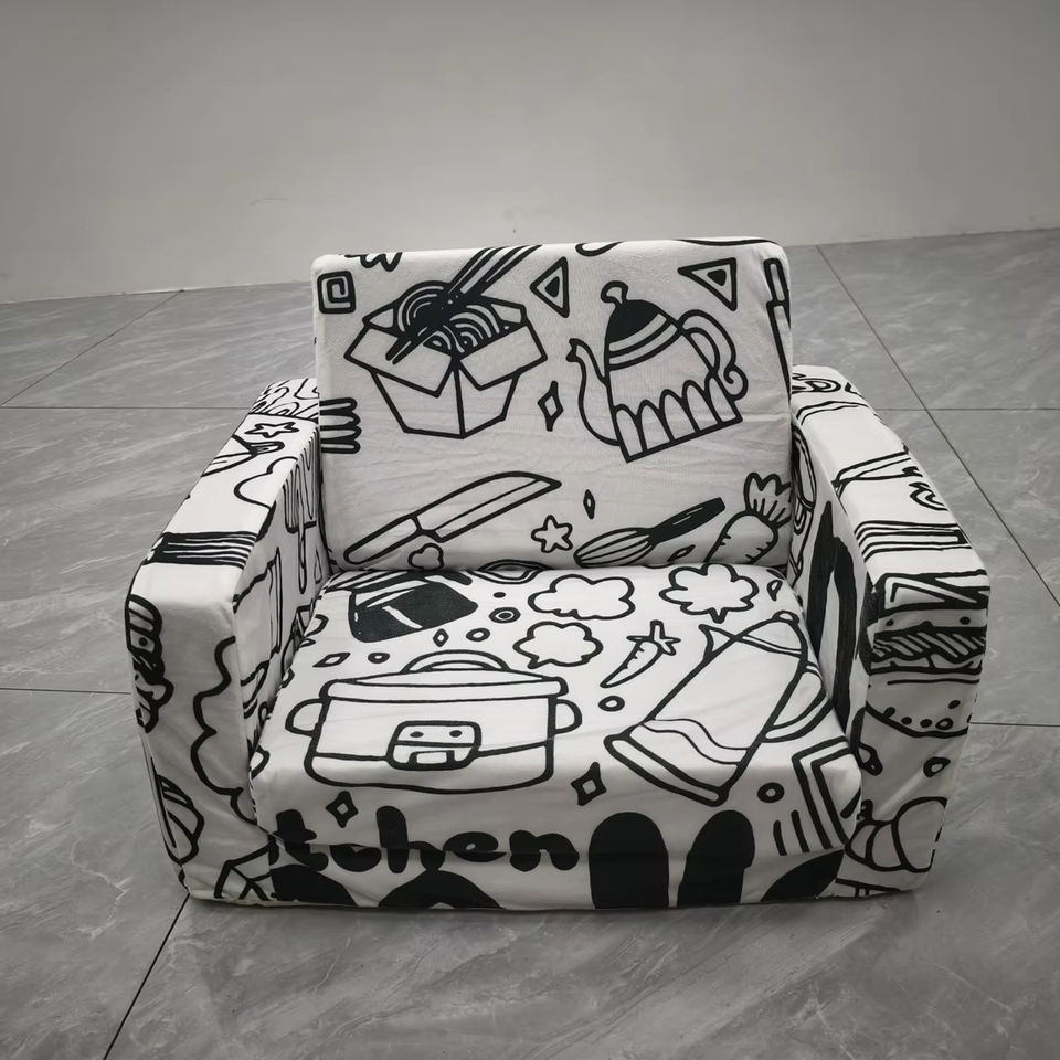 Canapé convertible 2-en-1 gris Sherpa pliable pour tout-petits, chaise-canapé moderne pour enfants pour chambre à coucher et salon, personnalisable