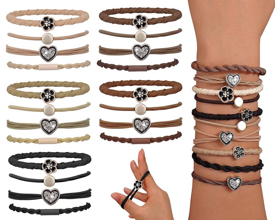 Lot de 20 élastiques à cheveux bohèmes personnalisables pour femmes avec décorations, bracelets élastiques pour cheveux fins et épais, élastiques en nylon sans dommages