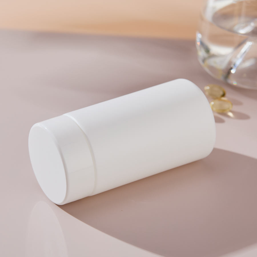 Bocaux cylindriques personnalisables en PET de 200 ml à surface mate avec couvercle à vis, emballage blanc pour suppléments nutritionnels (vitamines, huile de poisson)