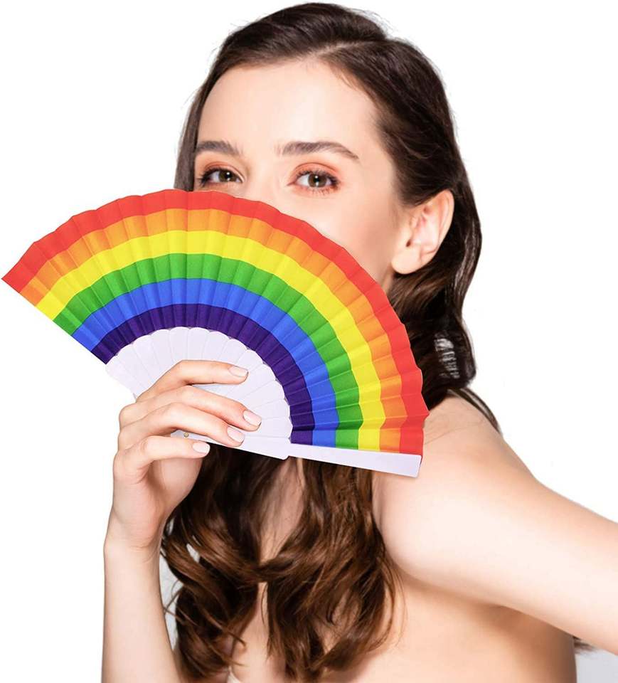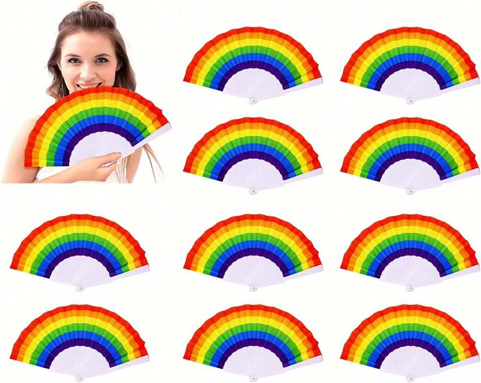 Éventail en plastique personnalisable de 23 cm, style arc-en-ciel, technique de bambou écologique, gravé, personnalisez votre propre design