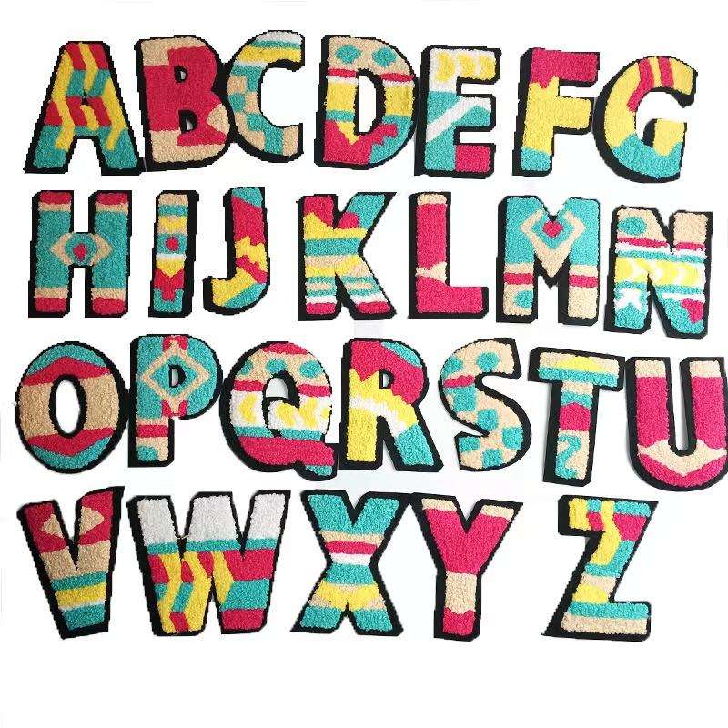 Personnalisable 26pcs Anglais Lettre Chenille Brodé Patches Sticker Getzner Applique pour DIY Vêtements Décoration