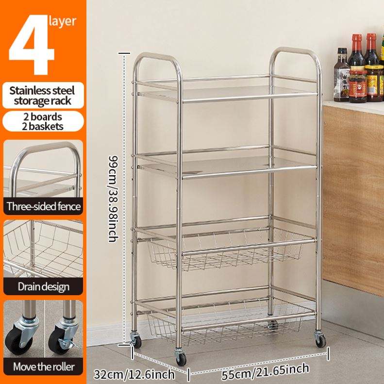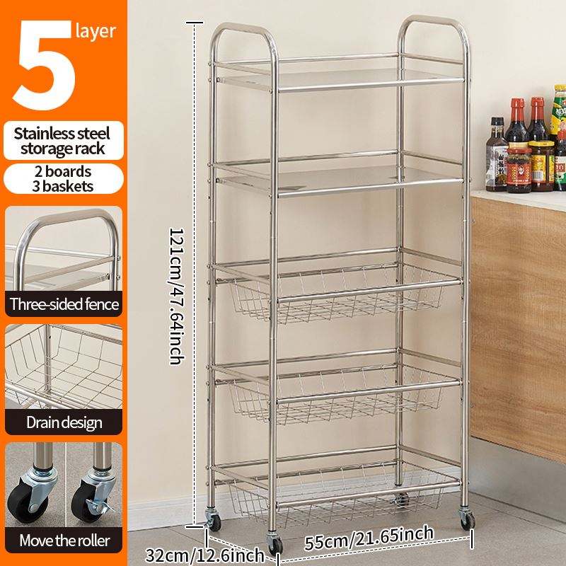 Étagère de rangement de cuisine en acier inoxydable personnalisable à 3/4/5 niveaux, chariot métallique pour le rangement des légumes et des fruits à la maison