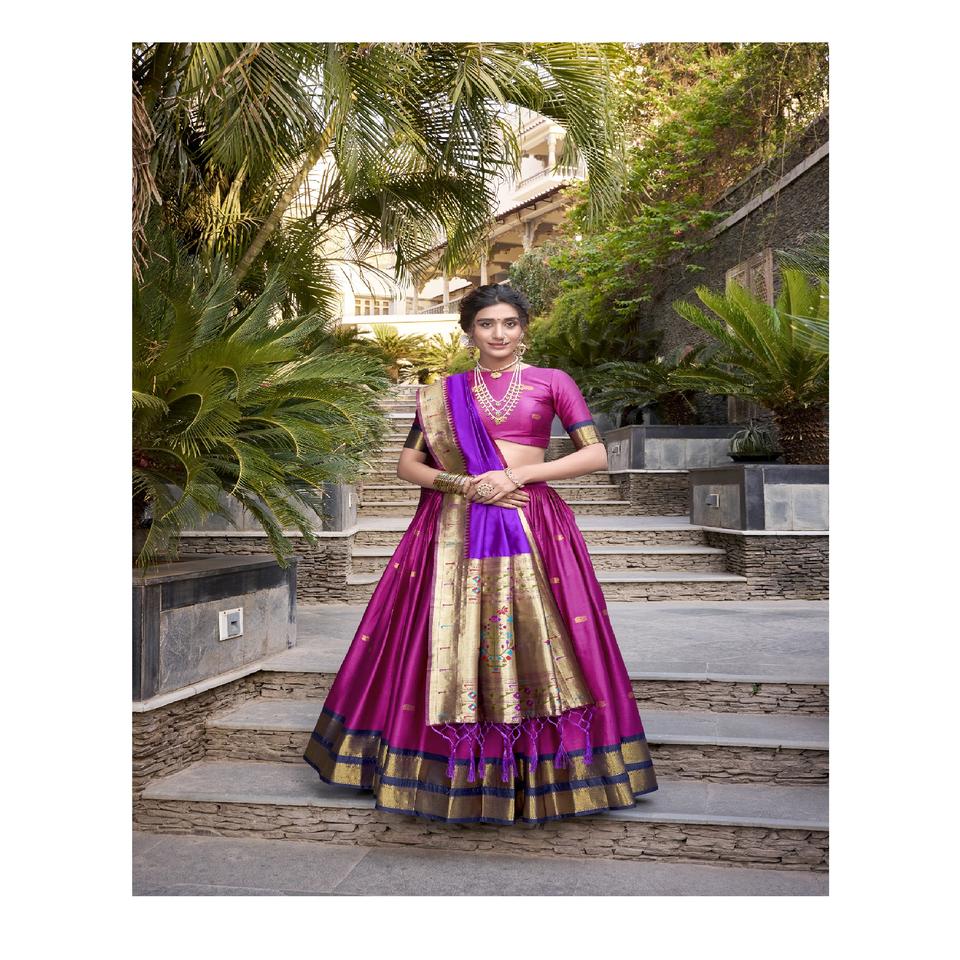 Customizable 3.8m Jacquard Silk Lehenga Choli with Flair Zip Closure Micro Cotton Paithani Weaving for Party Wedding Festivals