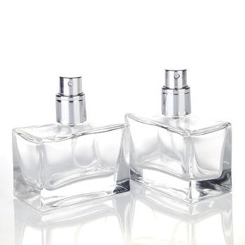 Bouteilles de parfum en verre transparent personnalisables de 30ml 50ml en forme de rectangle carré avec capuchon en cristal carré pour les soins personnels