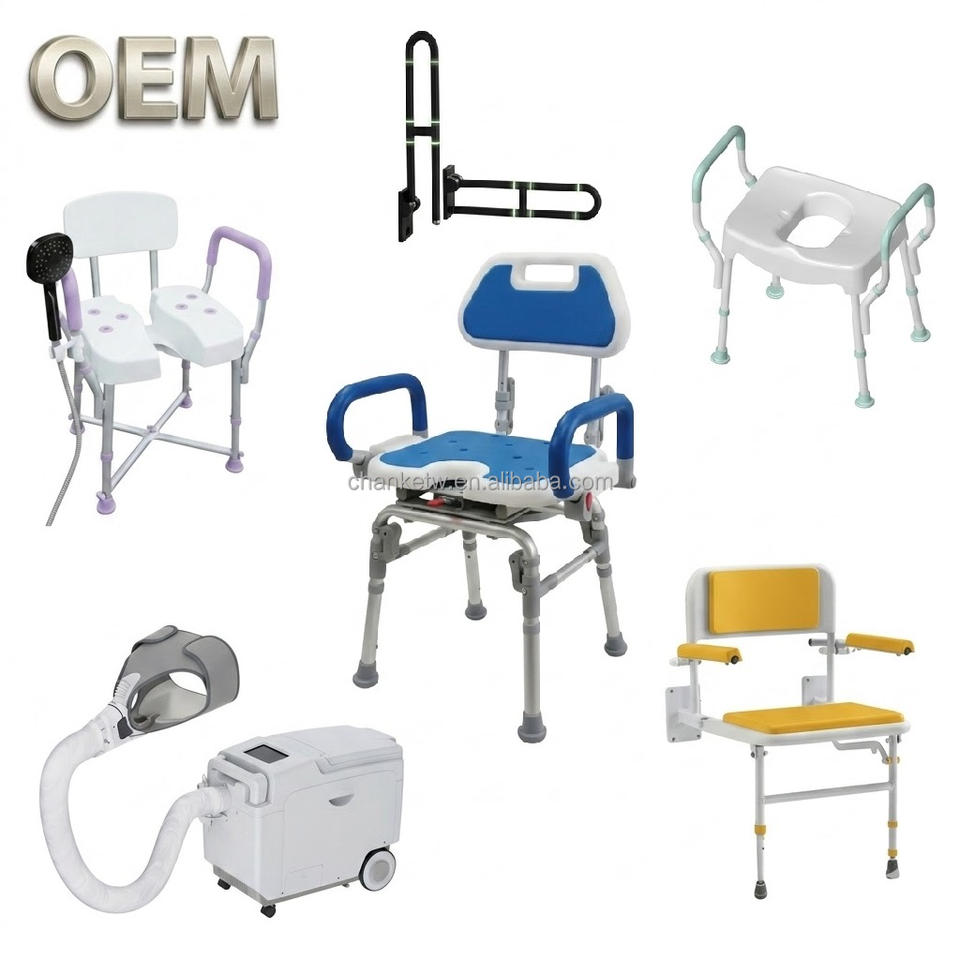 Chaise de douche rotative à 360 degrés réglable, personnalisable OEM/ODM, fabriquée à Taïwan, avec cadre en alliage d'aluminium, équipement de sécurité amovible pour salle de bain