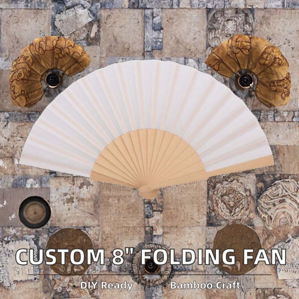 Éventail pliant vintage en bambou de 8 pouces personnalisable, peint à la main, vierge pour publicité, décoration intérieure ou cadeau