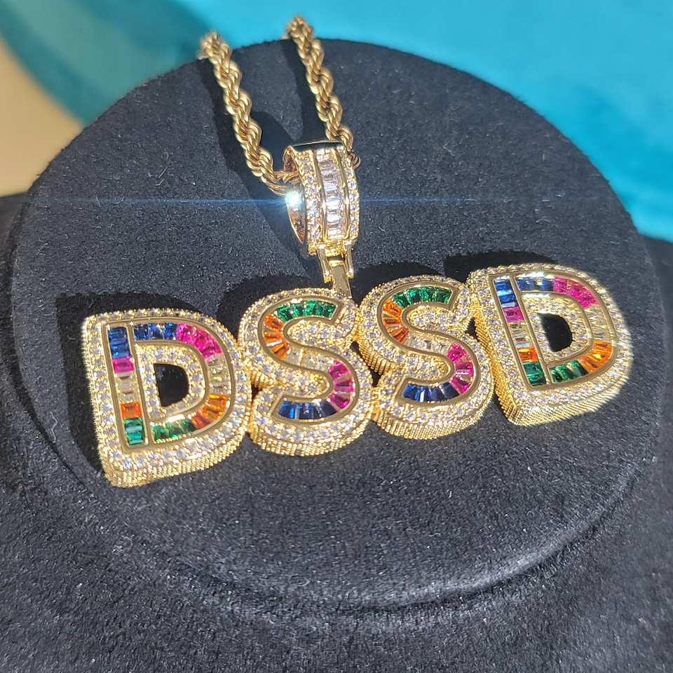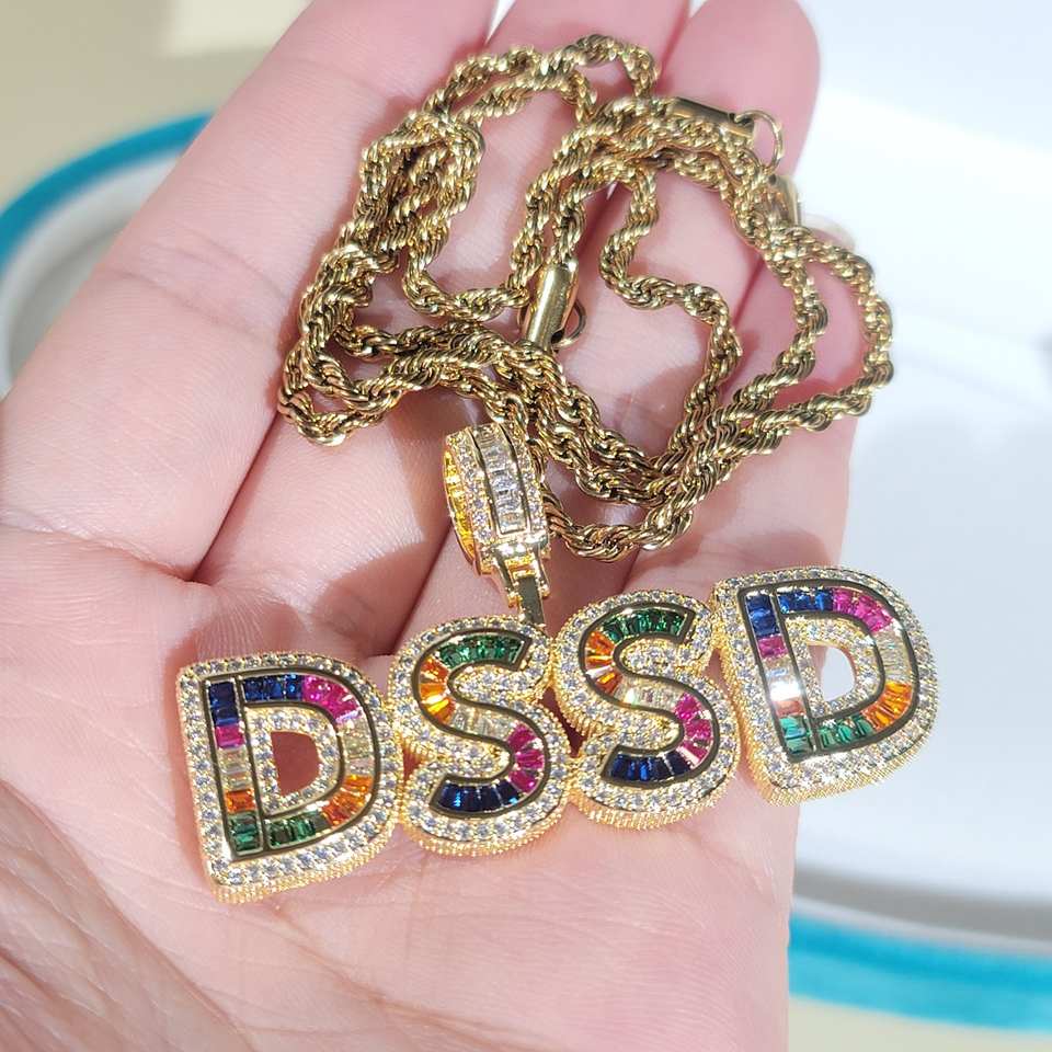 Personnalisable Argent 925 Diamant Glacé lettre Pendentif Chaîne Plaqué Or Baguette Diamant Lettres Cadeaux d'Anniversaire pour Garçons Filles