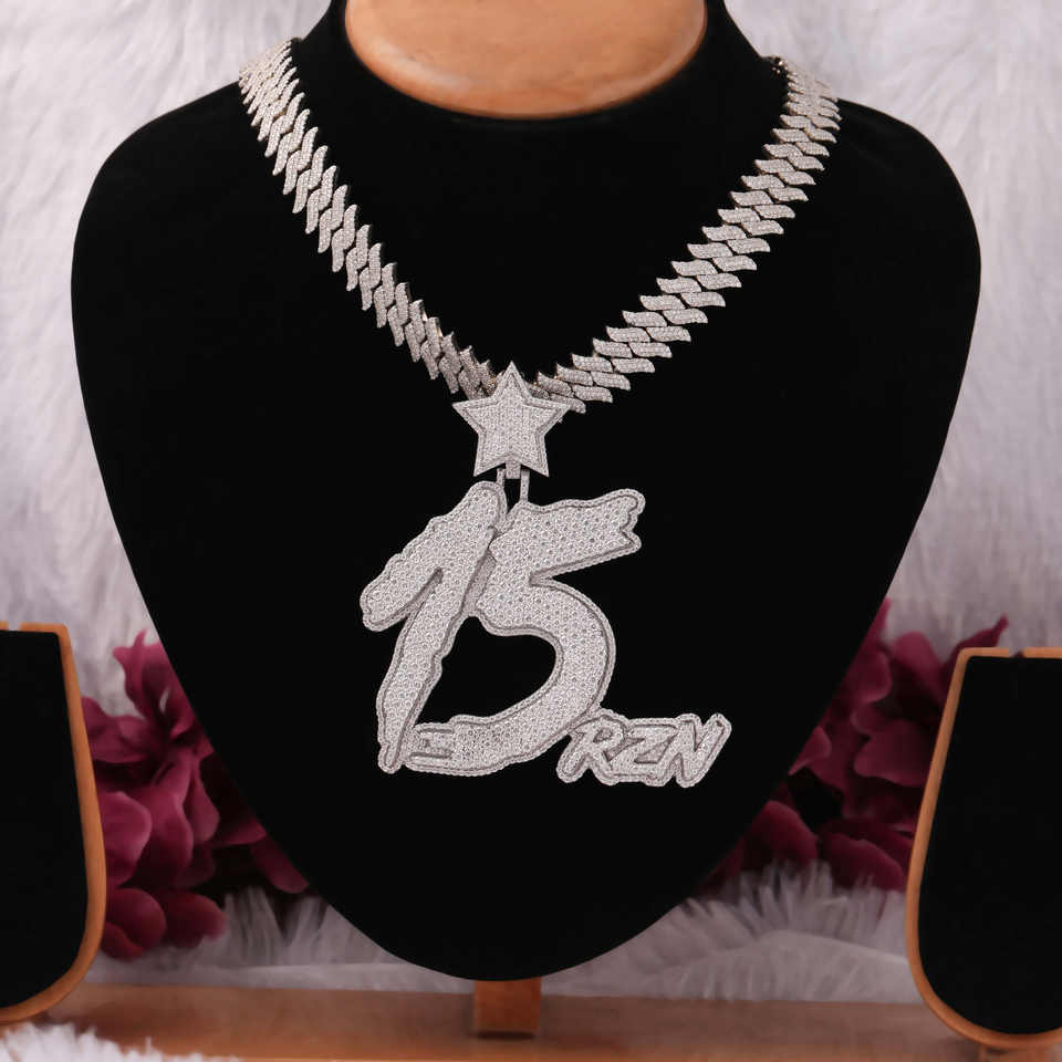 Chaîne en argent sterling 925 personnalisable avec pendentif en moissanite en forme de 15 RZN fabriqué à la main corps glacé complet pour fiançailles mariage