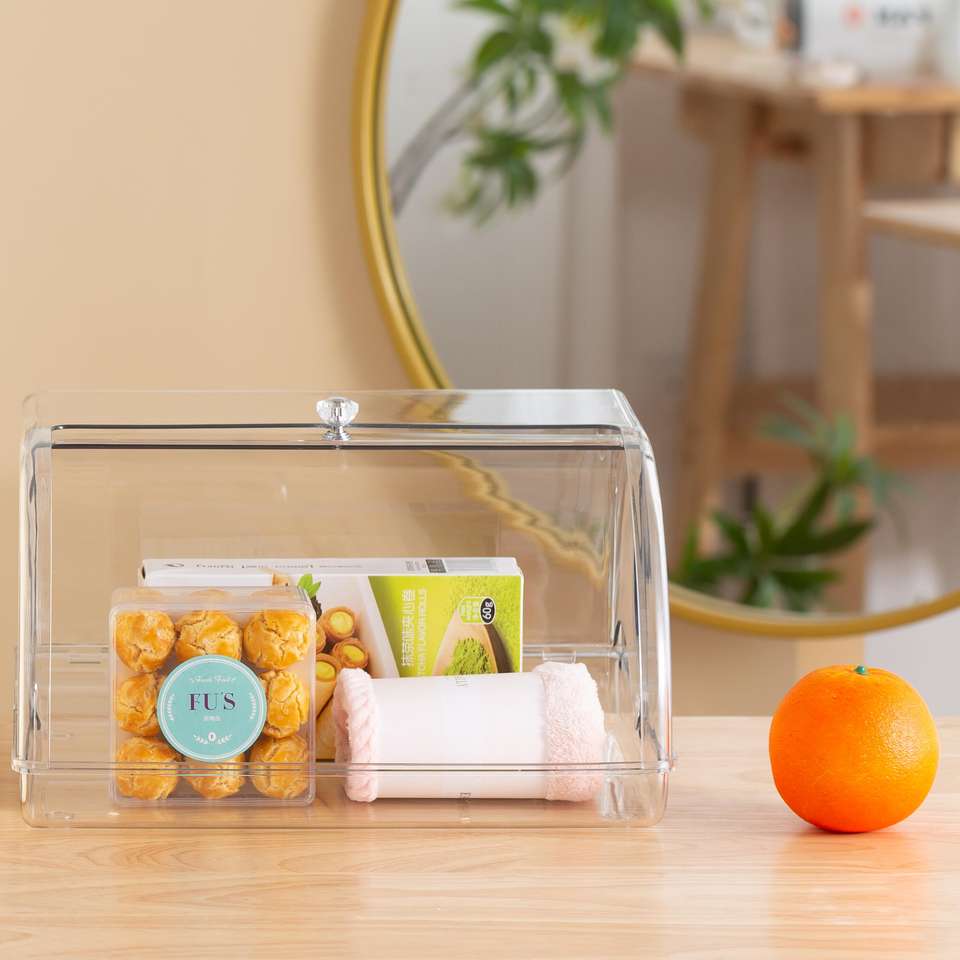 Récipient de stockage de pain en acrylique moderne personnalisable avec couvercle à rouleau support de comptoir de cuisine pour les biscuits de pain faits maison