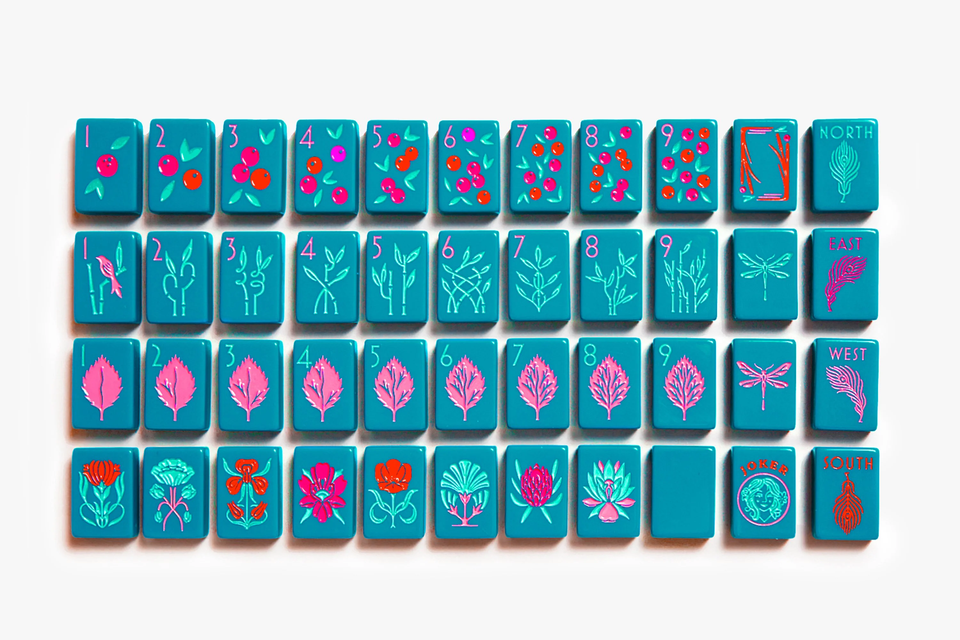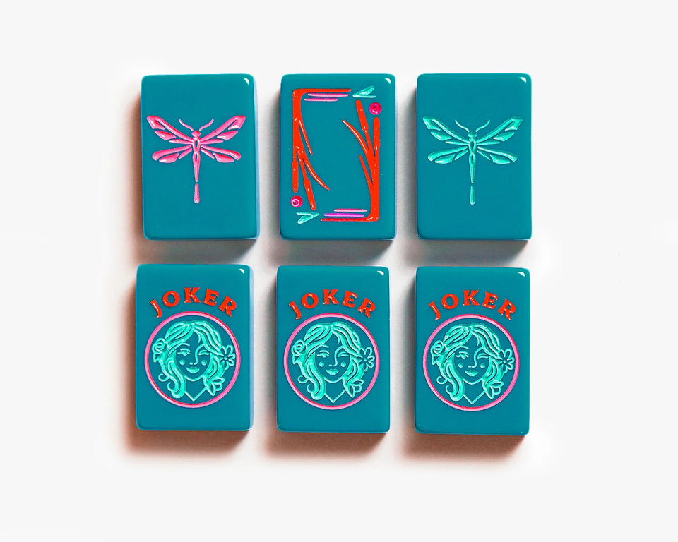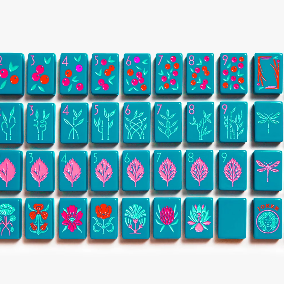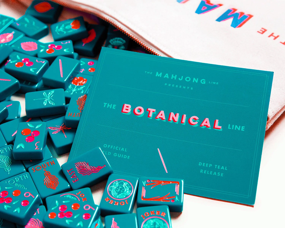The Botanical Line: Deep Teal Mahjong Tiles