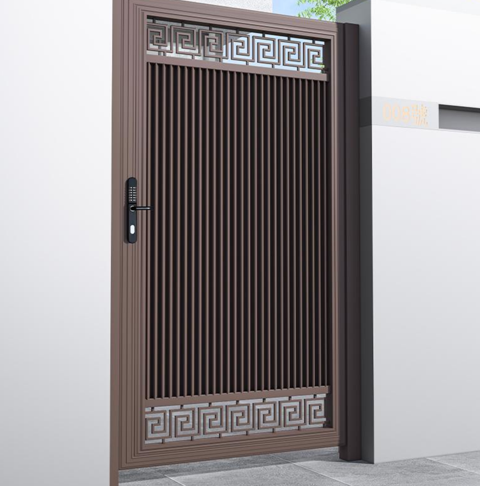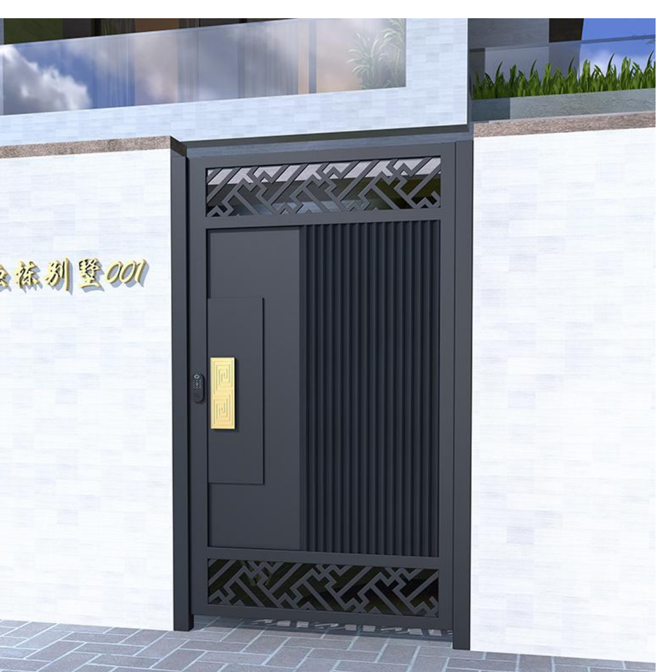 Portail de cour en aluminium personnalisable avec finition noire thermolaquée et passage piéton intégré