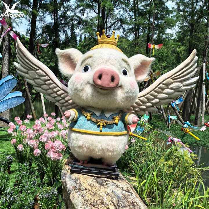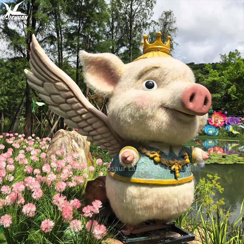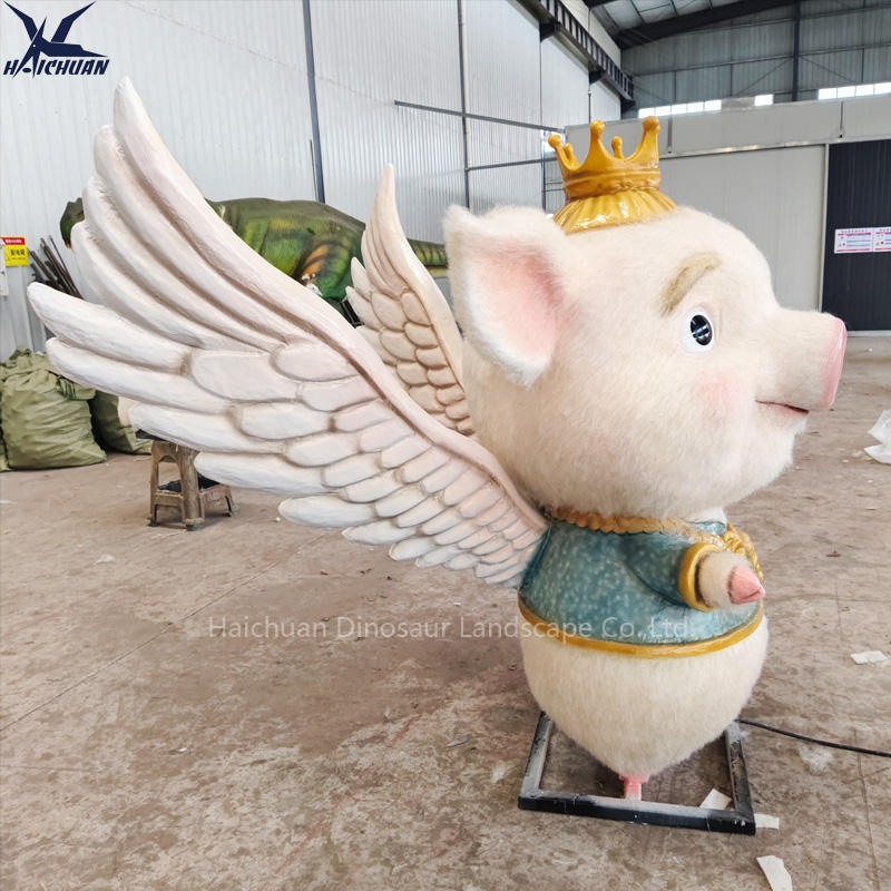 Statue de cochon animatronique personnalisable avec ailes mobiles pour modèle de parc à thème forestier à vendre