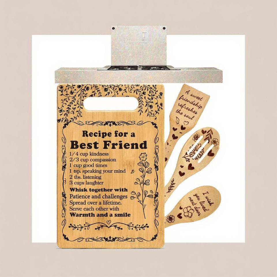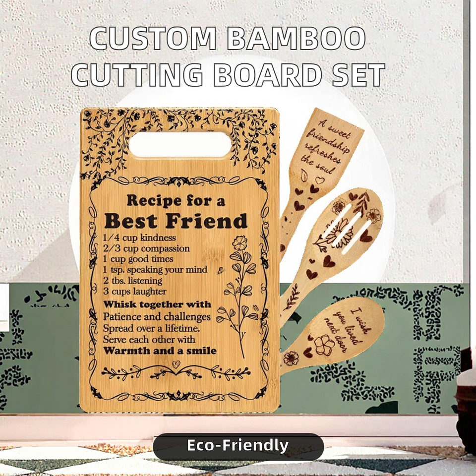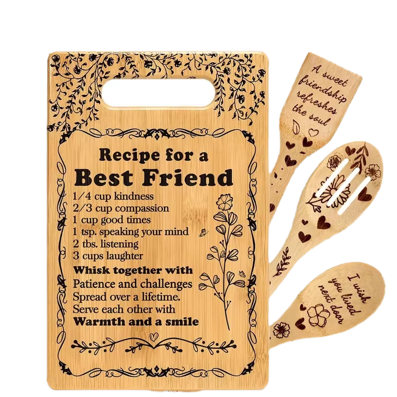 Ensemble de planches à découper en bambou personnalisables, quatre pièces, gravées, pour la cuisine, la décoration intérieure, la présentation et le service, idéal comme cadeau.