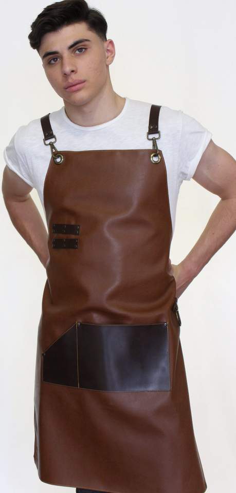 Nom du produit:Barbier en cuir et denim a[pron avec ceinture croisée