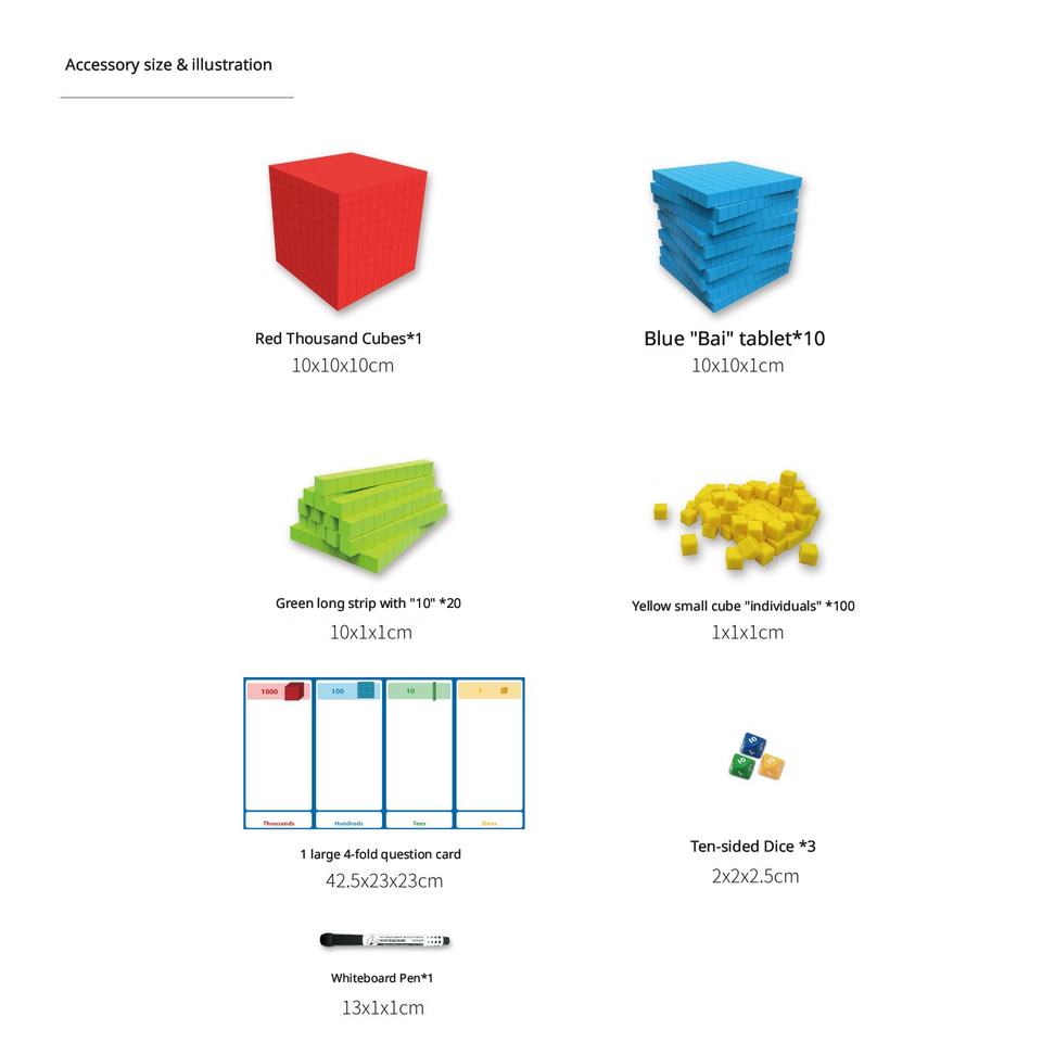Set Specification:Thousands Cube + Hundreds Flat + Tens Rod + Ones Unit