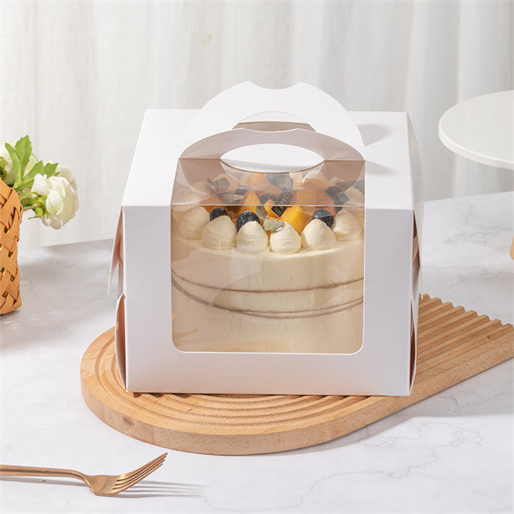 Boîte d'emballage pour gâteaux en kraft biodégradable personnalisable avec laminage mat et poignée pour pâtisseries et desserts d'anniversaire