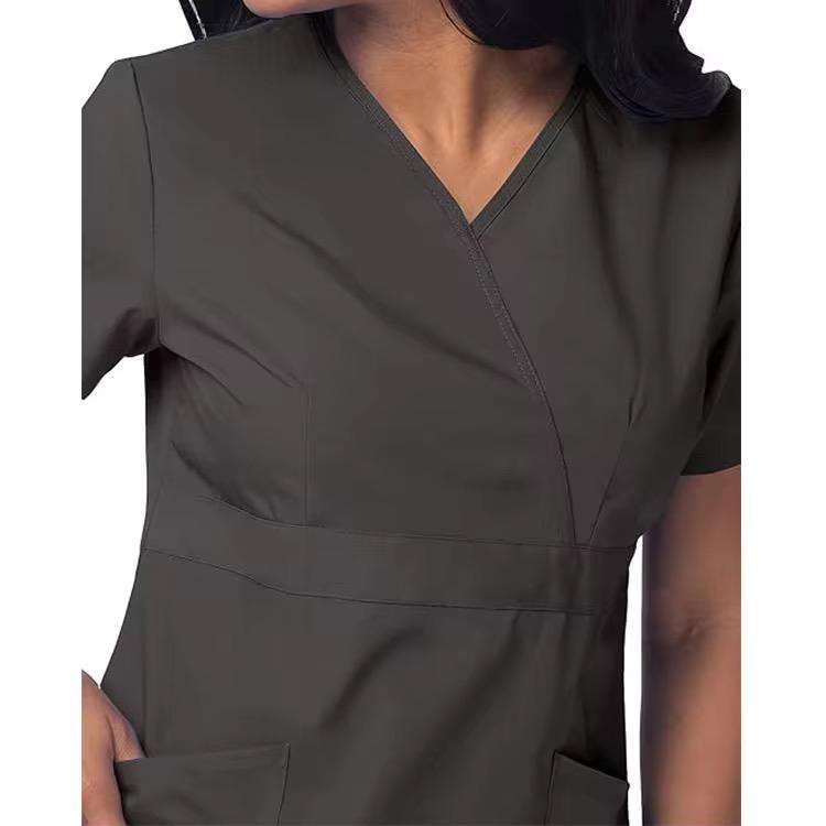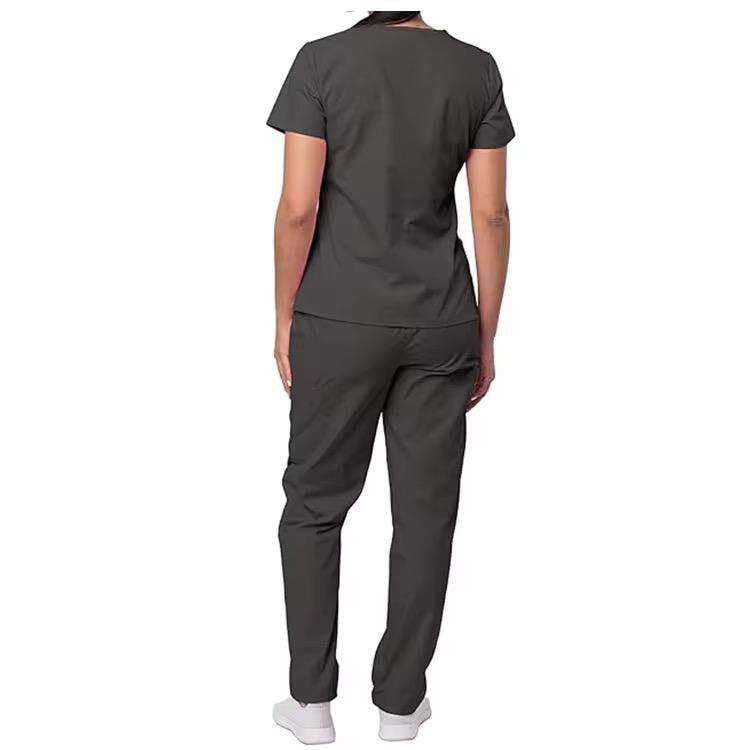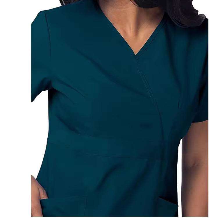 Customizable Breathable Canvas Nursing Uniforms Scrub Nurse Set with V-Neck Tops Pocket Pants Short Sleeve