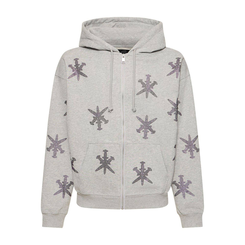 Sweat à capuche zippé intégral pour homme, personnalisable, en coton 100%, respirant, avec strass, pour l'automne, faible MOQ, vente en gros