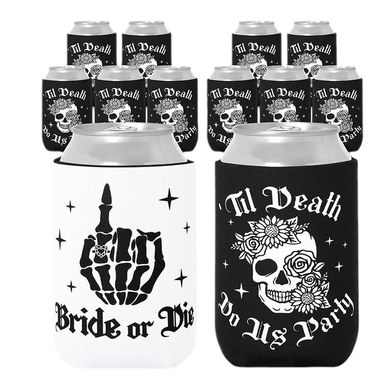 Nom du produit:Refroidisseur de canette personnalisable en gros pour mariage - Motif tête de mort, mariée ou morte imprimé