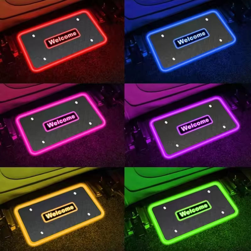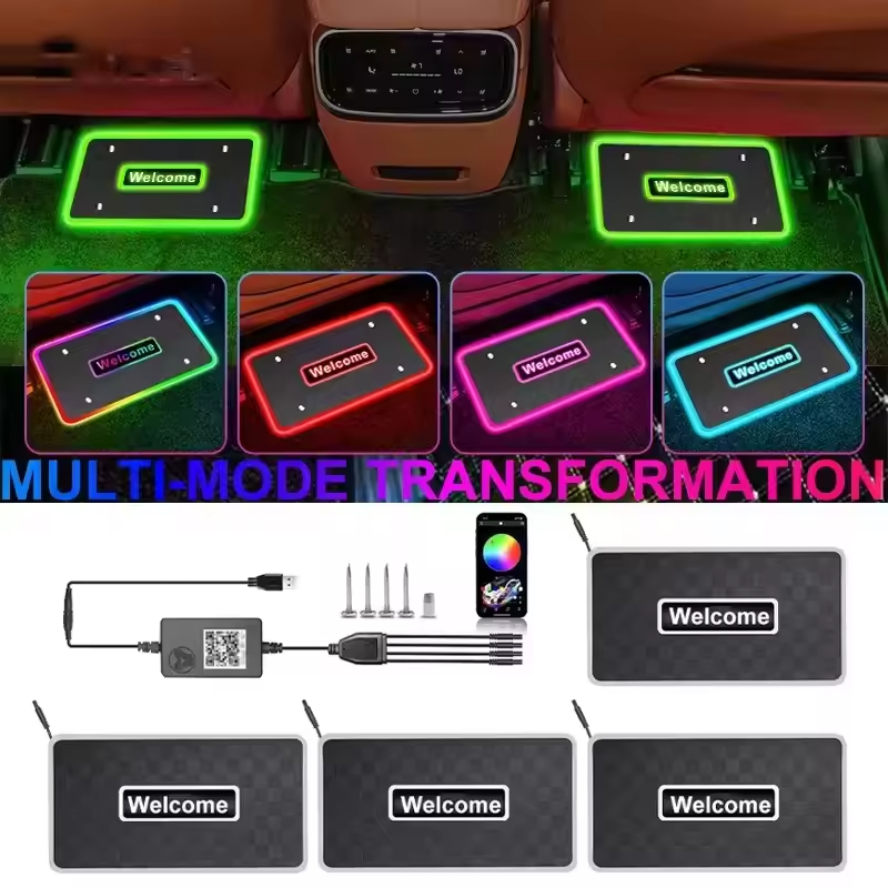 Tapis de voiture personnalisables avec éclairage d'ambiance pour la décoration intérieure, logo, texte, motif, bienvenue, contrôle par application, éclairage LED RGB pour l'intérieur de la voiture
