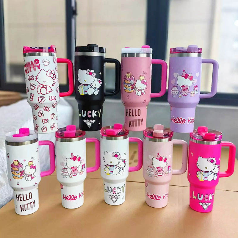 Mug isotherme personnalisable en acier inoxydable à double paroi de 40 oz avec poignée et paille, gravure laser, motif dessin animé KT
