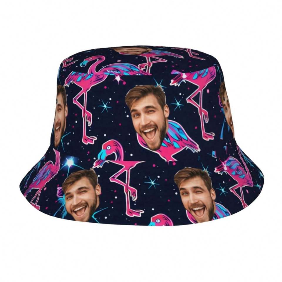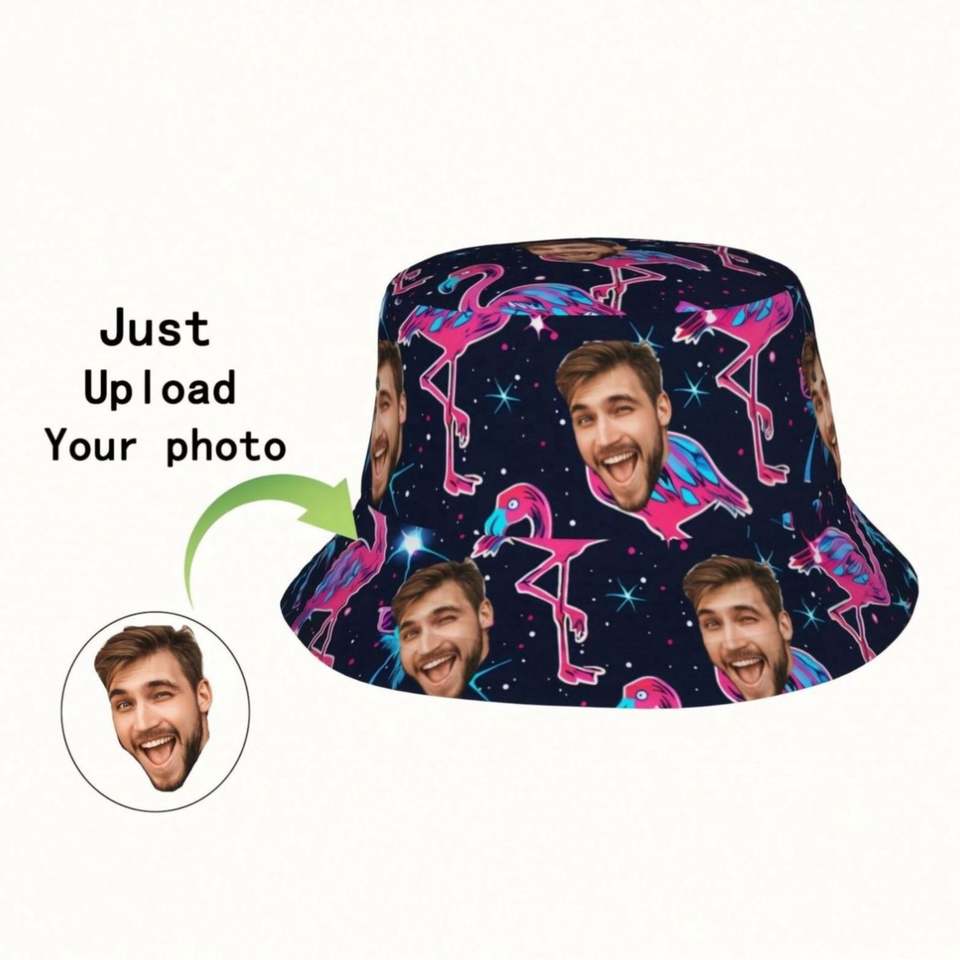 Chapeau Bob Personnalisable à Motif Dessin Animé, Design Photo Personnalisé Dessiné à la Main pour Hommes et Femmes, Idéal pour l'Été, la Plage, les Vacances, Cadeau Unique