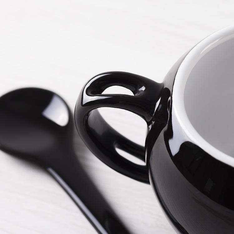 Mug en céramique personnalisable avec poignée en forme de cuillère, glaçure noire, cadeau créatif pour couple, qualité supérieure