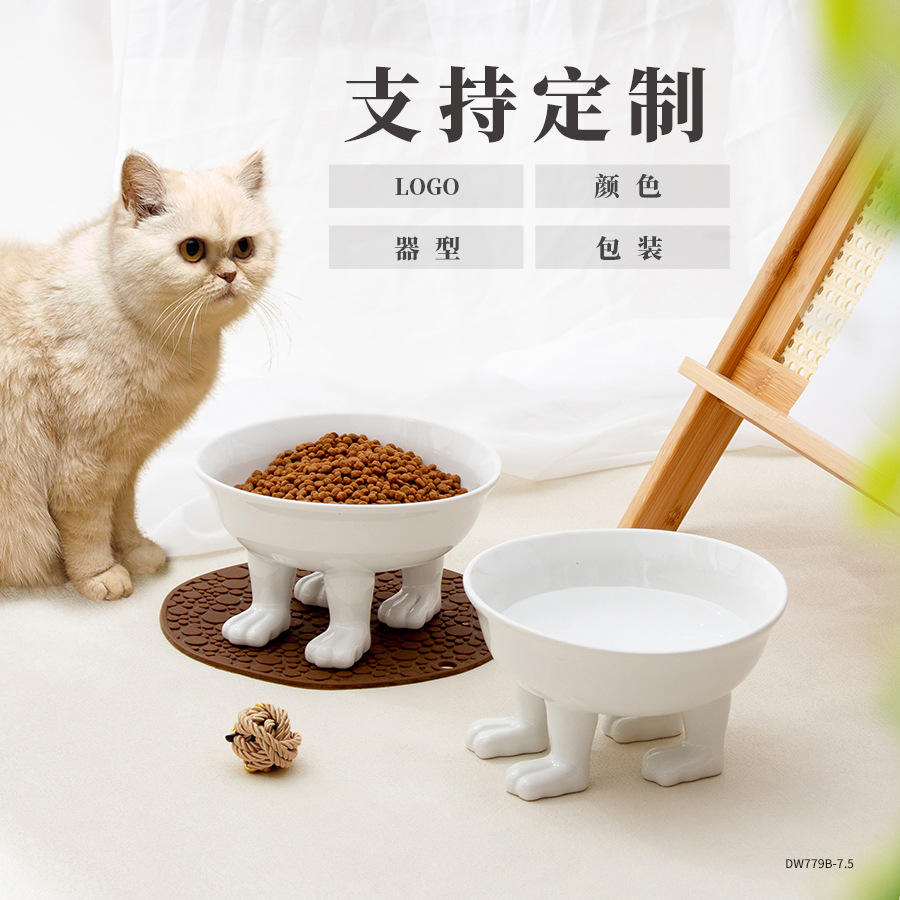 Gamelle en céramique personnalisable 800 ml blanche haute anti-renversement pour chats et chiens, origine Chaozhou DW779B-7.5