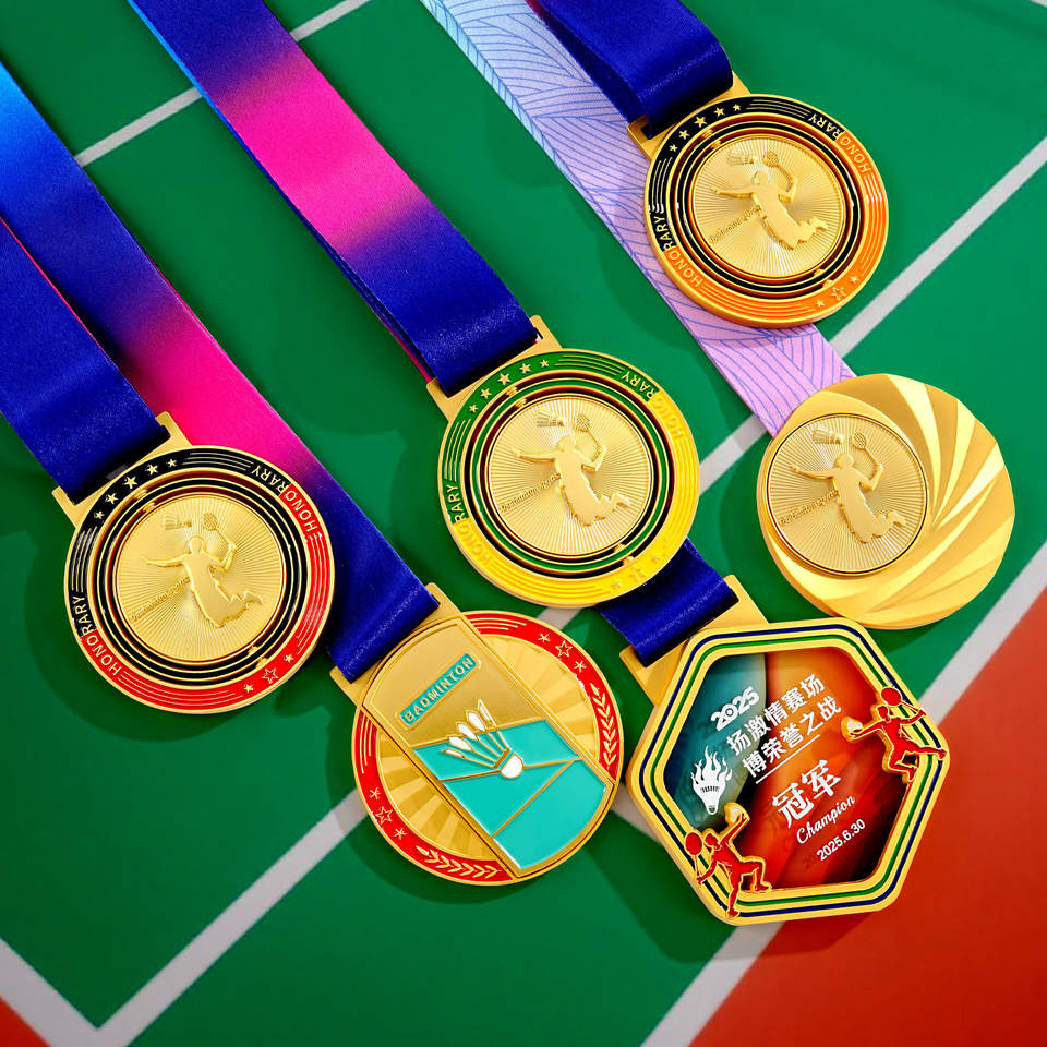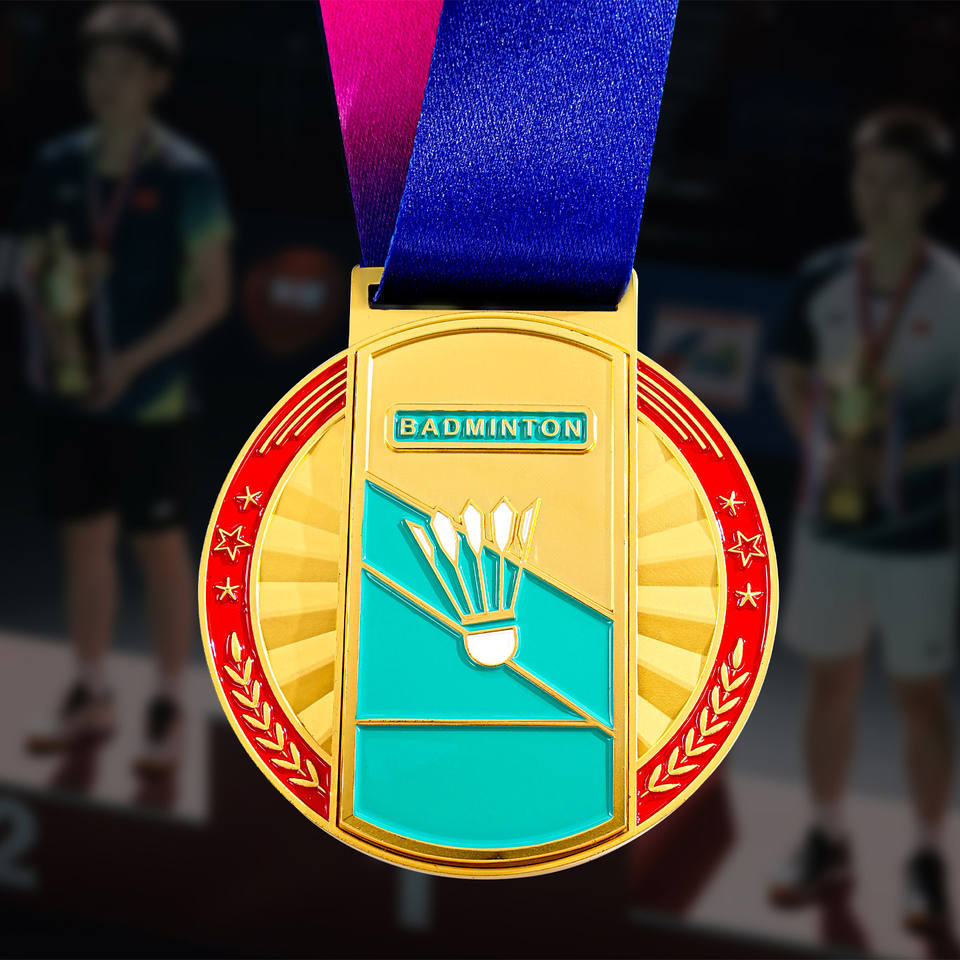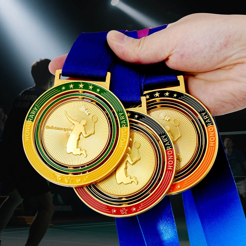 Médaille d'or de badminton pour enfants personnalisable Jeux de sport Champion Liste de cristaux Trophées en métal Médailles et plaques